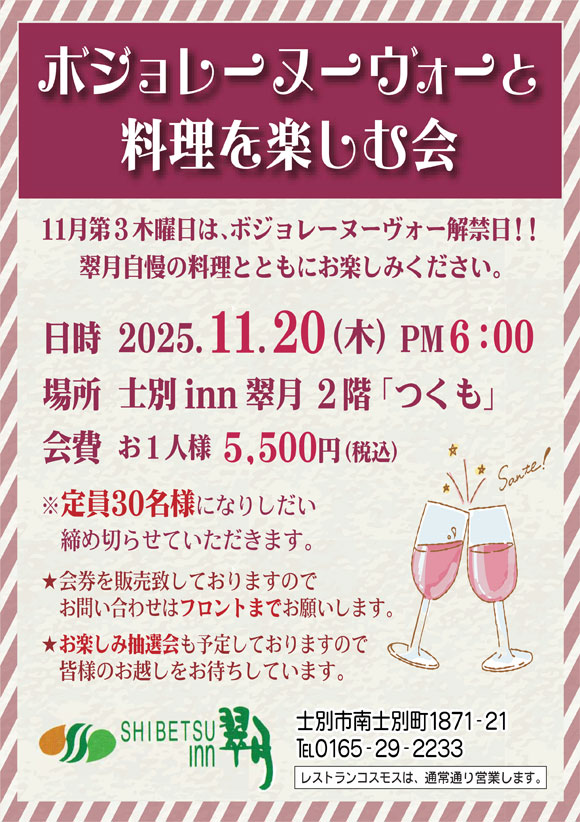「ボジョレーヌーヴォーと料理を楽しむ会」のご案内