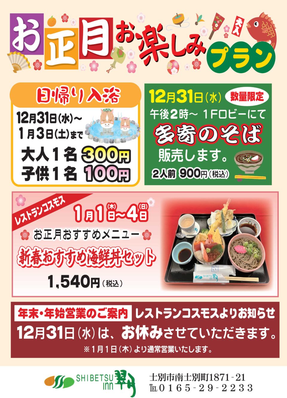 お正月お楽しみプランのご案内です。